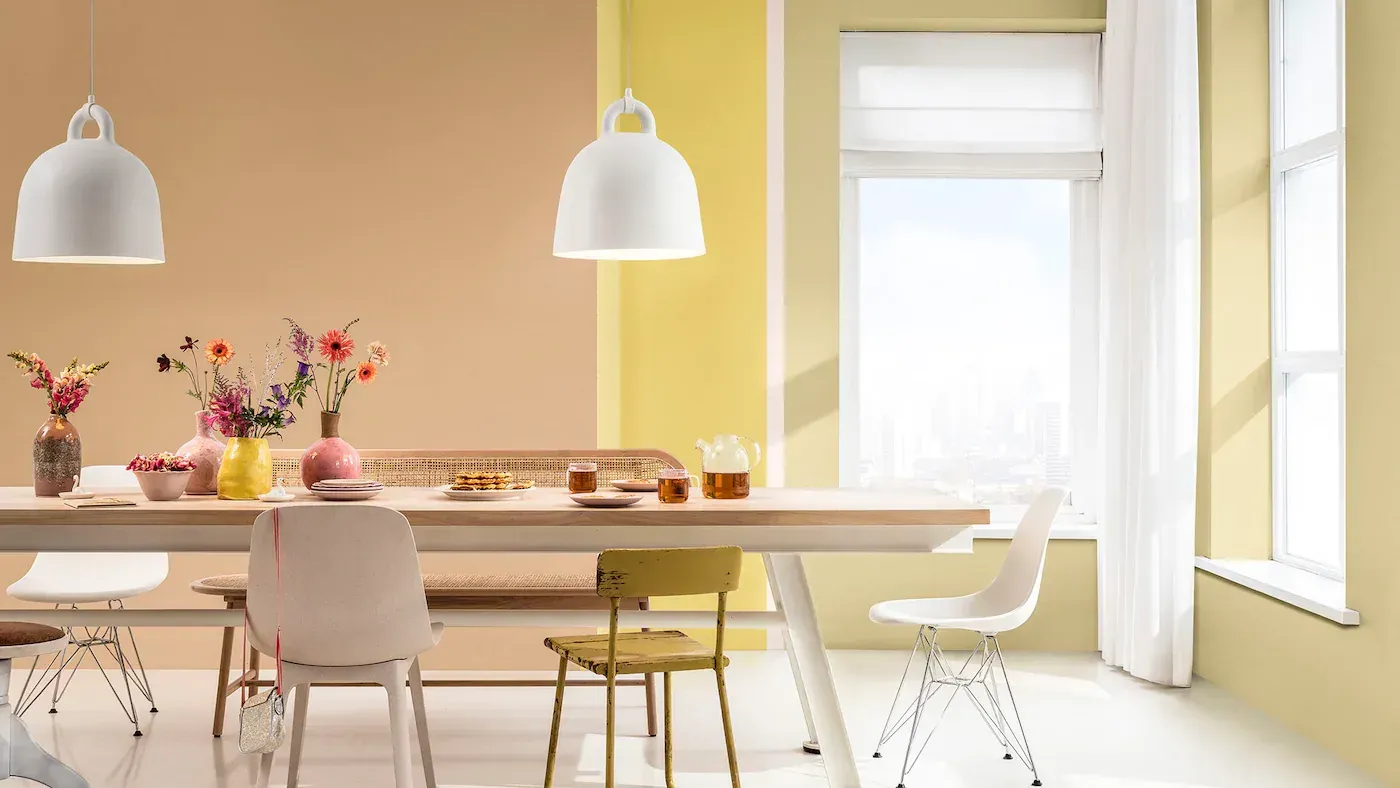 Experimente estas quatro ideias alegres de decoração usando a Cor do Ano da Dulux, Wild WonderTM, e a paleta Buzz.