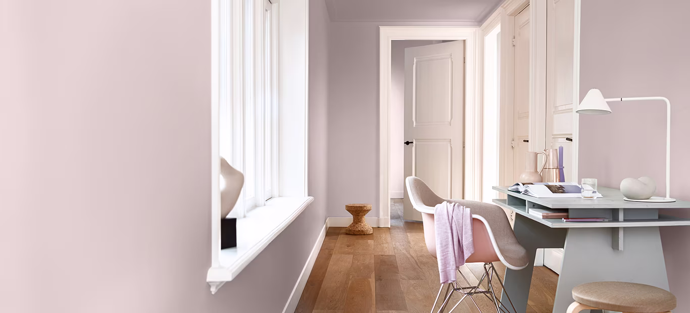 Com mais pessoas trabalhando em casa do que nunca, criar um espaço de trabalho no qual desejamos passar tempo é uma prioridade. Nossa Cor do Ano 2024, Sweet Embrace™, é o ponto de partida perfeito para qualquer esquema decorativo. Não só funciona lindamente por si só, adicionando calor e suavidade a qualquer escritório em casa, mas também atua como uma cor de base para uma variedade de outras tonalidades.
